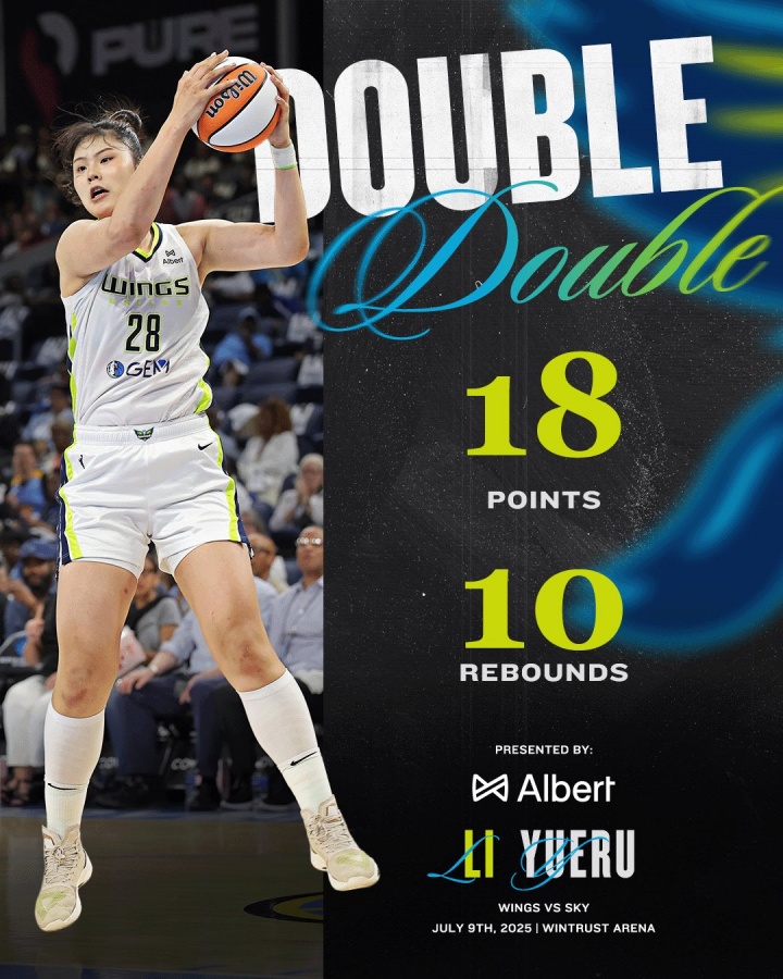 值得一提的是,18分是李月汝WNBA生涯第二高分,距离其生涯最高仅差1分。此外单场命中4记三分,是其生涯新高(此前单场命中多记三分的只有1场)。其中,李月汝在末节中段连进两记三分,帮助飞翼重新将分差追到个位数,同时打出一波9-0高潮。不过后续飞翼进攻端继续哑火,只能在客场吞下一场败仗。